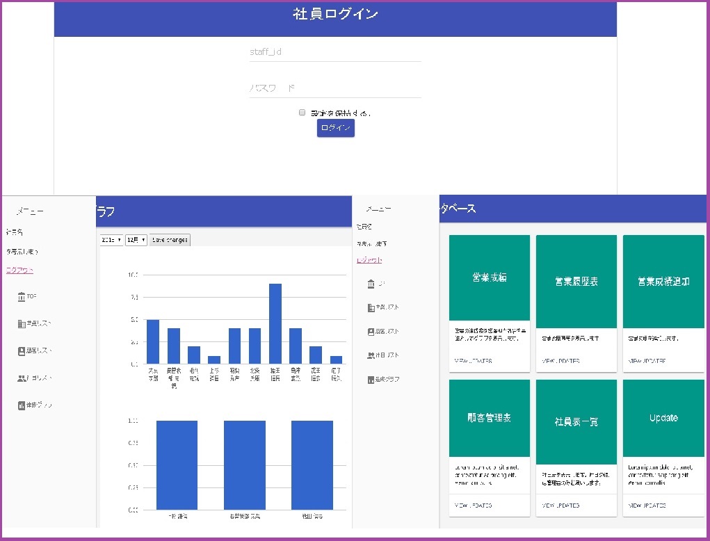 各担当者の累計や月ごとの営業成績をグラフで表示したり、顧客リストを作成したりした。
